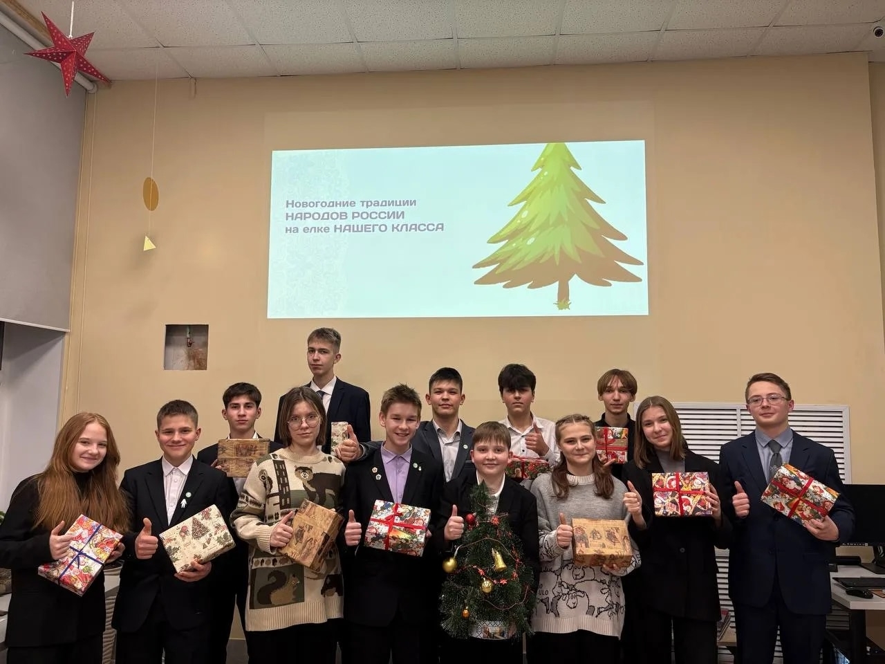 В рамках занятия участники обсудили историю новогодних украшений, поделились семейными традициями и узнали, как встречают праздник разные народы России.