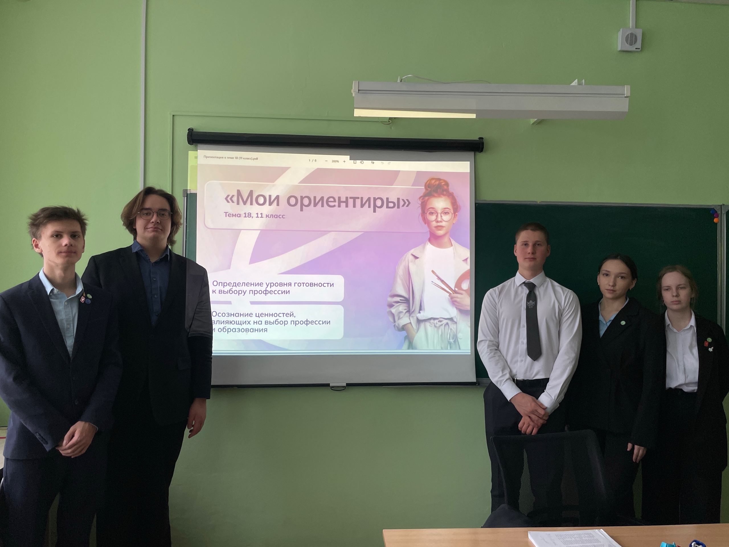 В ходе обсуждения темы занятия школьники назвали пять составляющих выбора профессии, оценили свои возможности, выяснили, насколько далеко они продвинулись по пути знакомства с профессиями и учебными организациями среднего профессионального образования, поговорили о своем опыте участия в профориентационных проектах, мастер-классах и экскурсиях.