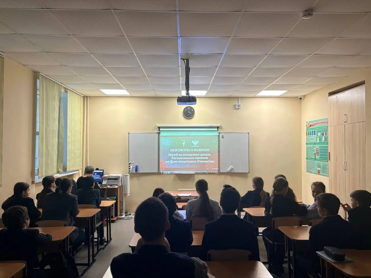 Сегодня, 16 февраля, в преддверии Дня защитника Отечества, в лицее прошло внеурочное занятие «Разговоры о важном». Тема, которая не оставила равнодушным никого: «Герой из соседнего двора».