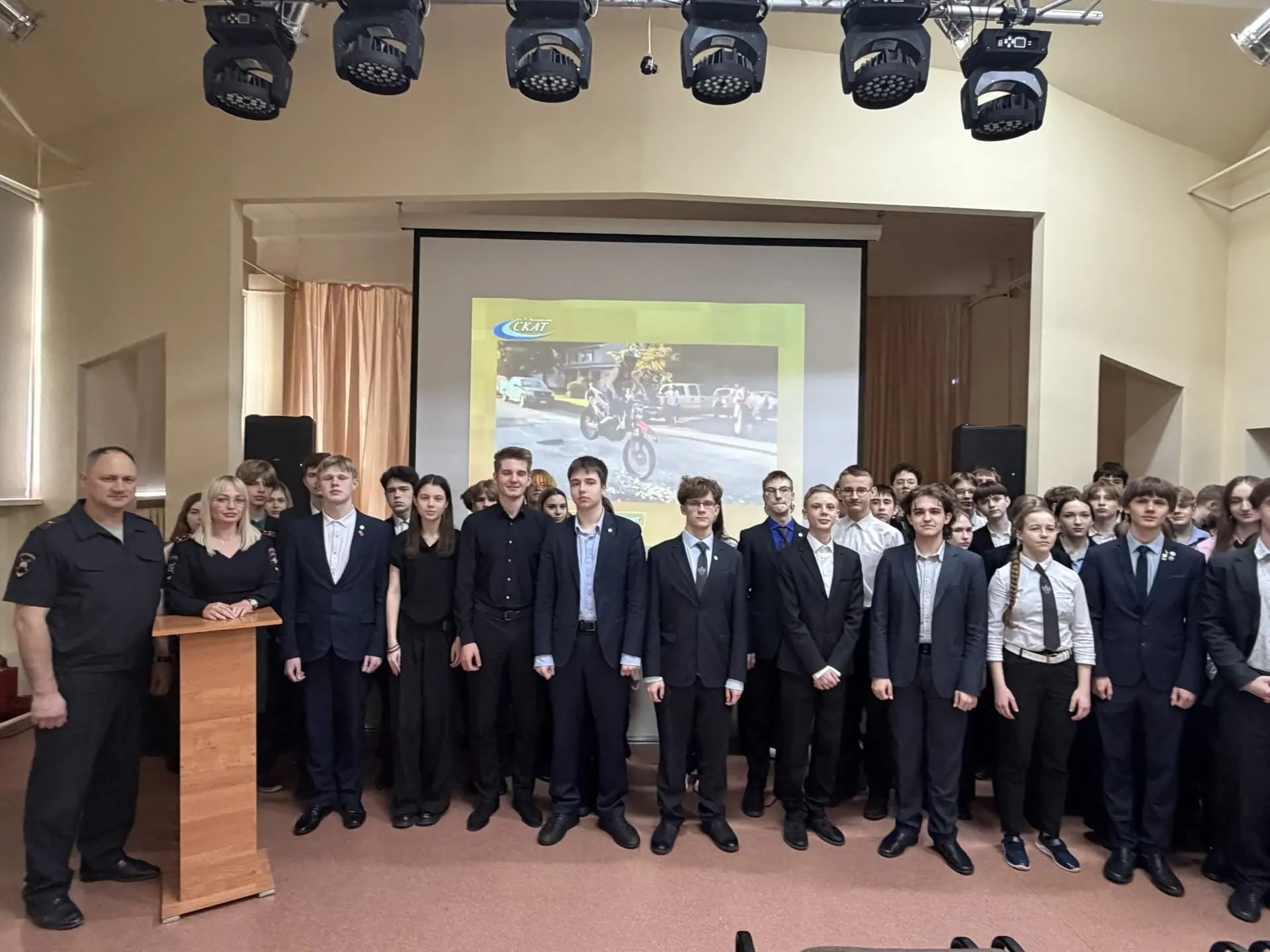 Перед лицеистами выступил майор полиции Юрий Викторович Шишков — представитель аналитического отделения отдела организационно-аналитической работы и пропаганды БДД.