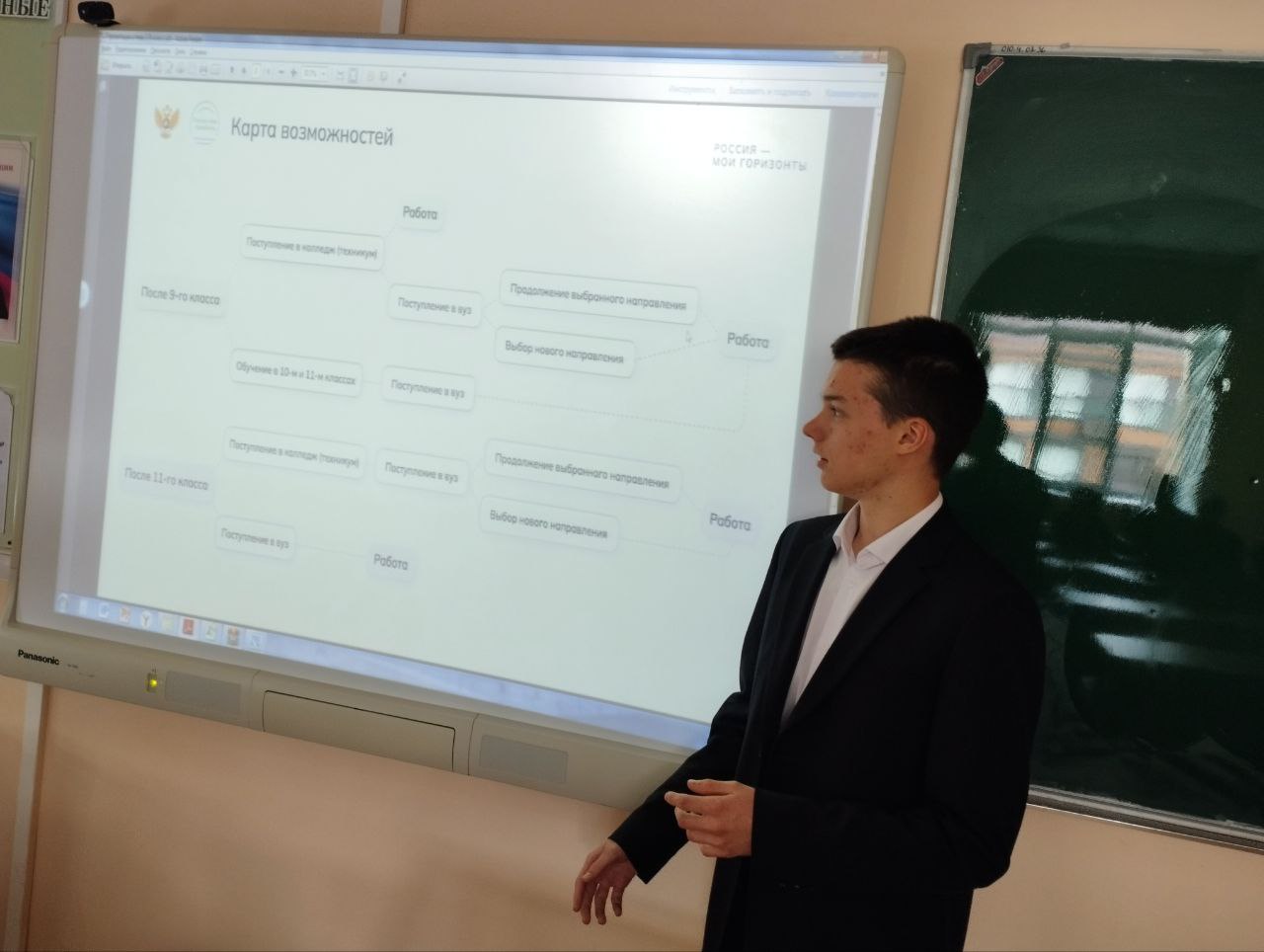 Занятие курса «Россия – мои горизонты» помогло обучающимся сделать еще один шаг навстречу своему будущему, задуматься о важности самостоятельного и ответственного выбора.